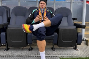 體育資訊10月10日訊 挪威球星哈蘭德正在隨國家隊備戰世預賽,在社交媒體上,他曬出了自己在訓練場邊手捧球鞋的照片,依然是一如既往的嚴肅風,看起來他即將開啟一場訓練課。