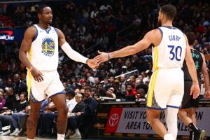 勇士本場首發如下:庫里、波杰姆斯基、理查德、庫明加、霍福德。