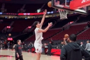 體育資訊10月15日訊 今日季前賽開拓者對陣勇士,賽前斯普利帶領楊瀚森和克林根訓練。