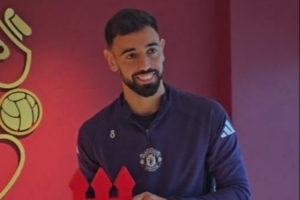 體育資訊10月18日訊 B費此前當選曼聯9月最佳球員,他于本周五在卡靈頓訓練基地領取了該獎項。