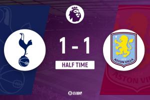 體育資訊10月19日訊 北京時間21:00,英超第8輪熱刺vs阿斯頓維拉,比賽在新托特納姆熱刺球場打響!上半場,本坦庫爾破門;庫杜斯進球被吹越位!羅杰斯半場前世界波扳平!半場結束,熱刺暫時1-1維拉。