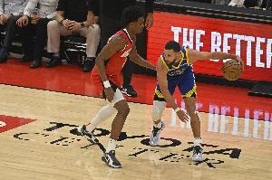 上賽季季后賽首輪對陣火箭,庫里場均出戰38.2分鐘,能得到24分5.9籃板5.7助攻1.1搶斷0.9蓋帽,他在次輪G1遭遇腿筋拉傷。