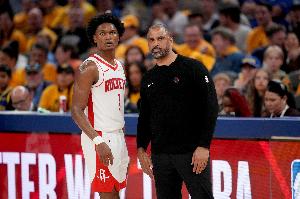 2023年6月,阿門(mén)-湯普森以首輪第4順位被火箭選中,而兩個(gè)月前,烏度卡剛被任命為火箭主教練。當(dāng)時(shí),湯普森對(duì)這位新主帥了解不多,但沒(méi)過(guò)多久,他就摸清了烏度卡對(duì)球員的要求,也發(fā)現(xiàn)這位教練看似嚴(yán)厲的外表下,藏著敏銳的幽默感。