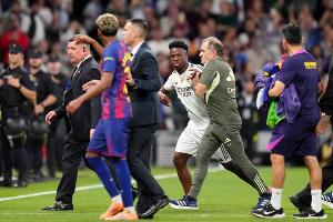警察介入平息事態(tài),米利唐一度被包圍,舉起了雙手。與此同時(shí),阿隆索沖過(guò)來(lái)將維尼修斯拉回,盧寧此事是距離巴薩球員最近的皇馬球員。