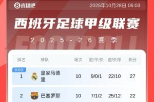 體育資訊10月28日訊 凌晨馬競客場2-0戰勝貝蒂斯,至此西甲第10輪比賽全部結束。
