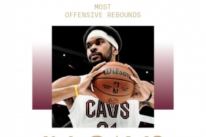 騎士前場籃板隊(duì)史第一是伊爾戈斯卡斯的2336個(gè),其次是特里斯坦-湯普森的2220個(gè)。