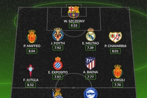 WhoScored西甲第10輪最佳陣容如下: