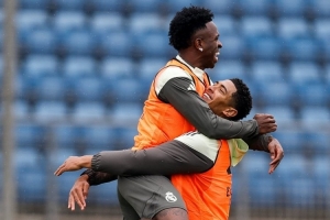 體育資訊10月29日訊 在經歷了國家德比一系列爭議風波后,皇馬陣中的氣氛似乎已經重新回歸平靜。今日,皇家馬德里官方社交媒體曬出球隊訓練照,畫面中維尼修斯與貝林厄姆緊緊相擁,兩人笑容滿面,顯得氣氛融洽。