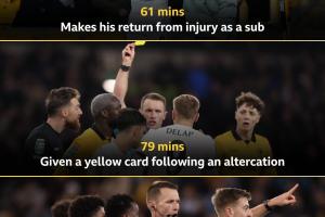 德拉普時隔2個月登場,替補25分鐘撞人兩黃變一紅被罰下