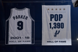 這面旗幟的每一處細節,都是對傳奇的精準注解。白色底紋上,五顆金色星星對應著2003至2014年間的五座總冠軍獎杯,底部“HALL OF FAME(名人堂)”標識銘記著他2023年的榮耀加冕,而核心的“1390”字樣,則是波波維奇執教的豐碑。數據不會說謊:2214場執教、1390場勝利、62.8%勝率、22個賽季帶隊闖進季后賽,季后賽總勝場達到170場,5次總冠軍,3次獲得年度最佳教練。但比起數字,更動人的是致敬方式——沒有盛大儀式,恰如波波維奇本人,永遠將聚光燈讓給團隊。