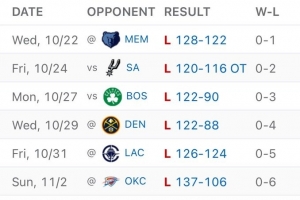 體育資訊11月3日訊 鵜鶘客場(chǎng)106-137慘敗雷霆,遭遇開季6連敗。