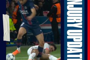 在巴黎對陣拜仁的比賽中,阿什拉夫因小腿受傷被迫離場。